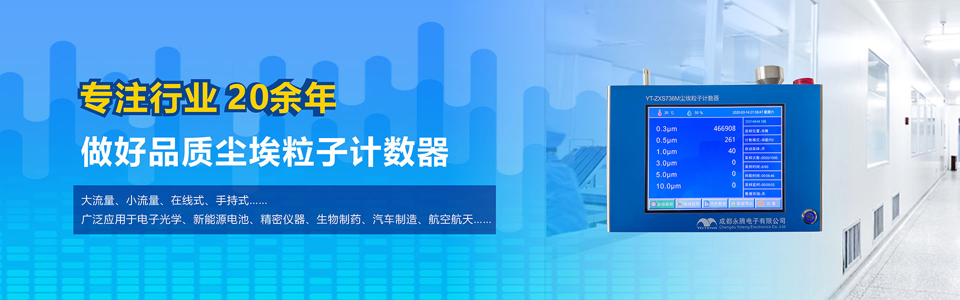 成都永騰電子有限公司位于成都市國家經(jīng)濟(jì)技術(shù)開發(fā)區(qū),是一家專業(yè)從事環(huán)境空氣監(jiān)測儀器研發(fā)、生產(chǎn)、銷售于一體的高科技企業(yè)。產(chǎn)品涵蓋空氣檢測儀器、潔凈間在線塵埃粒子計數(shù)器監(jiān)測系統(tǒng)、大氣顆粒物監(jiān)測微站系統(tǒng)、電化學(xué)分析儀器、實驗室設(shè)備等產(chǎn)品。